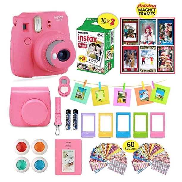 Two shutter button accessories and a strap are included. Includes film counter and film pack confirmation window. Personalise your Instax camera using the included two shutter button accessories and strap.